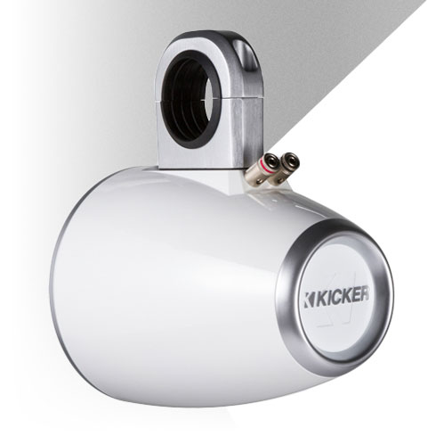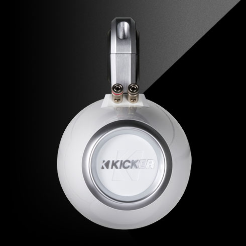 With its bold cosmetics, the white KM enclosures with contrasting accent details complement KICKER's 6.5-inch coaxial marine speakers.