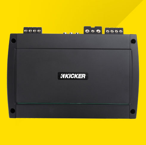 Gain, crossover and bass-boost controls are protected behind a gasket-sealed panel, as is the control cover hiding the settings, creating a water-resistant barrier to key controls. KickEQ™ delivers as much as an 6dB of extra bump with a simple turn of the knob. A powerful 24dB crossover is also included, letting you quickly tune your system to perfection. A full-range RCA output allows you to easily add another amplifier without running new signal cable to your KICKER KMC Media Center.