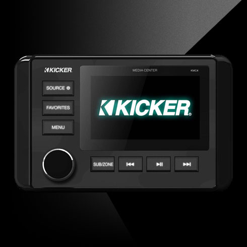 The KMC4 comes with a sunlight-viewable, full-color 3-inch LCD screen and a rotary encoder for easy access to your tunes. Add even more bump to your boat by connecting amplifiers to the front, rear, sub, and zone-2 RCA outputs.