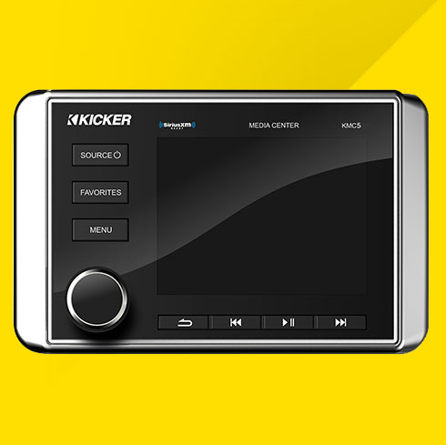 Your KMC5 comes with a sunlight-viewable full color 3.5-inch LCD screen, rotary encoder and 240 watts of peak power into six channels. Add even more bump to your boat by adding amplifiers to the front, rear, subwoofer and zone-2 RCA outputs.