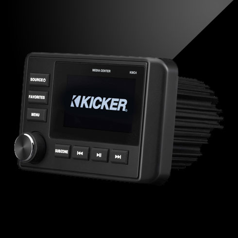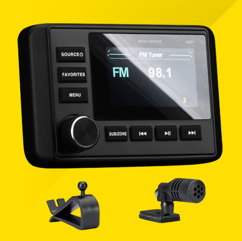 The KMC4 comes with a sunlight-viewable, full-color 3-inch LCD screen and a rotary encoder for easy access to your tunes. Add even more bump to your boat by connecting amplifiers to the front, rear, sub, and zone-2 RCA outputs.