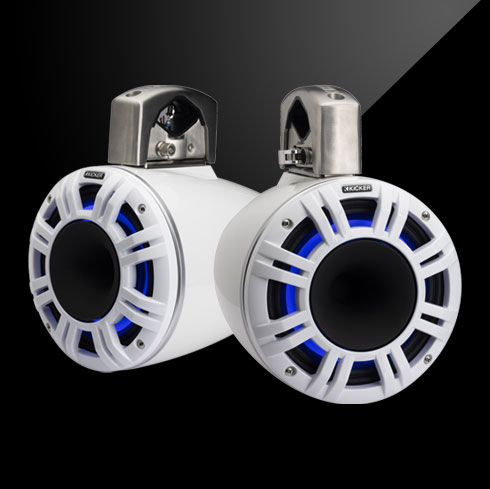 Award-winning KMXL Horn-Loaded Speakers, dropped inside a pair of tough black or white KICKER tower cans for any all-weather use. Loud, clear, and convenient.