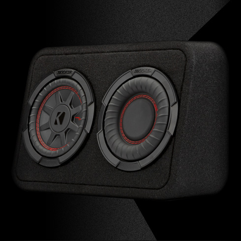 The CompRT 6-3/4-inch Subwoofer Enclosure is the easiest way to get great bass under your seat, behind your back bench or in your cargo area. It comes loaded with a reFLEX™ passive subwoofer and CompRT active sub for extremely low bass, then carpeted and loaded with a single 2-Ohm terminal.