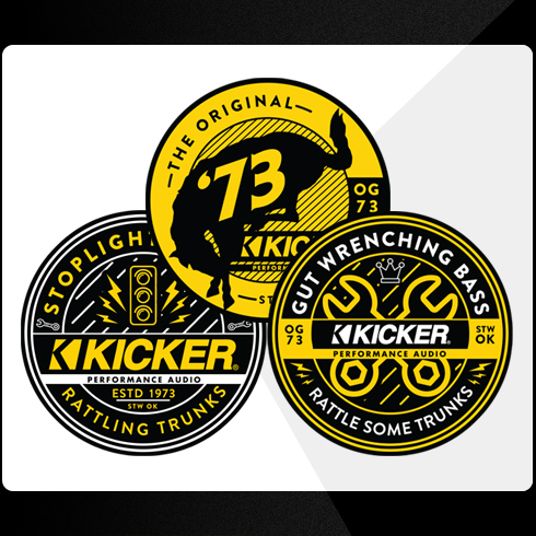 Round KICKER decals. Three designs.