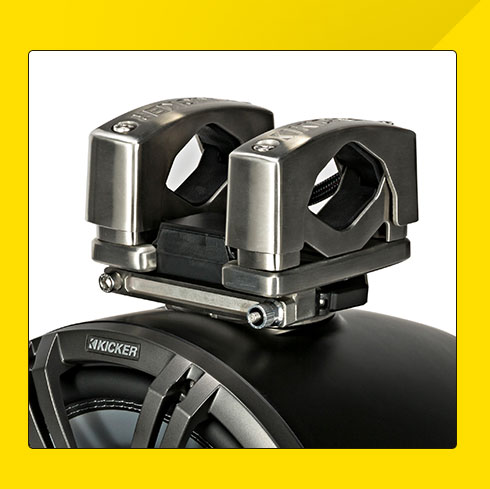 KICKER engineered a revolutionary new way to mount your KMTC. Made from stainless steel and thick ABS, the locking cam/toggle system works with a 354˚ swiveling design, allowing easy rotation of the speaker without tools!