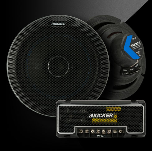 The QSC drivers includes a revolutionary 25mm Teteron® dome tweeter and custom wave guide for near perfect phase alignment for smooth frequency response. The injection-molded Polypropylene cone is impregnated with carbon-fiber for tight, accurate midrange. An NBR rubber surround provides superior damping, and complemented by KICKER’s signature blue double surround stitching.