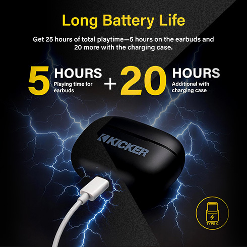 Enjoy 5 hours of playtime from a single charge plus 20 extra from the recharging case, for up to 25 hours total use for long flights, commutes, or back-to-back meetings.